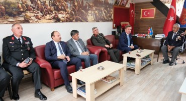 Belediye Başkanımız Sayın Bekir Aksun, Çelenk Sunum programının ardından protokol üyeleri ile birlikte Erzincan Muharip Gaziler Derneği’ni ziyaret ederek, Dernek Başkanı Sn. Sabri Taş ve kahraman gazilerimizin, 19 Eylül Gaziler Günü'nü kutladılar.