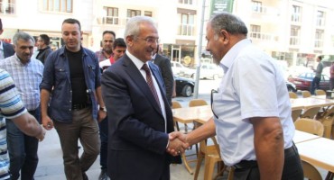 02 Eylül Çarşamba günü sabah saatlerinde Büyük Çarşı esnafıyla bir araya gelen Başkan Başsoy'a Başkan Yardımcıları Halit Mutlu, Karabey Atıcı, Sami Mollaoğulları ve Belediye Meclis üyeleri eşlik etti.