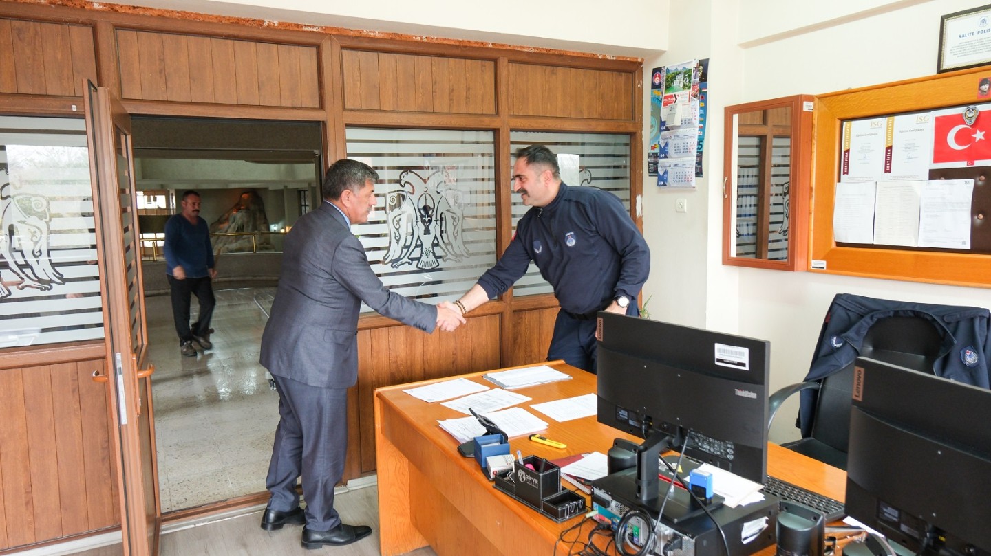 Ziyaret sırasında, Ramazan Bayramı’nın birlik, beraberlik ve dayanışma ruhunu pekiştirdiğini vurgulayan Belediye Başkanımız; şehrimizin gelişimi ve halkımızın huzuru için gece gündüz demeden çalışan tüm mesai arkadaşlarımıza teşekkür ederek, hep birlikte nice bayramlara ulaşmayı temenni etti.