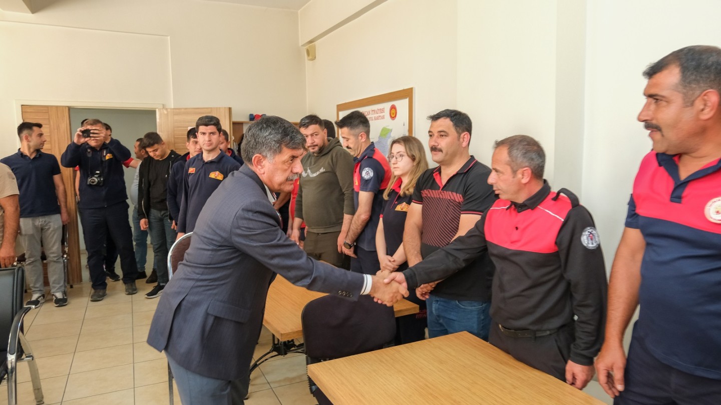 Şehrimizi bir ekip ruhuyla yönetmeye çalışıyoruz. Sizler de mesai arkadaşlarımız olarak gerçekten böyle koşturarak, değerli kardeşimiz suyu doldururken bir an önce buradan nasıl takviye edelim bir an önce nasıl çıkalım diye gayretine şahit olduk. İtfaiye ekibimizi müdürümüz başta, yöneticileri şefleri olmak üzere tebrik etmek için buradayız.