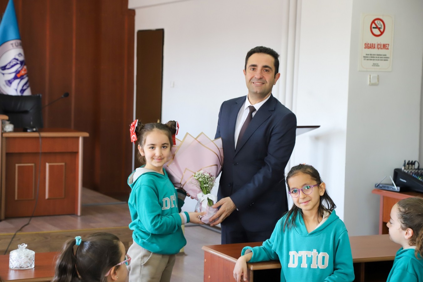 Ziyaret kapsamında ayrıca 12 Mart İstiklal Marşı’nın Kabulü ve Mehmet Akif Ersoy’u Anma Günü dolayısıyla öğrenciler tarafından Belediye Başkan Yardımcımıza Türk Bayrağı takdim edildi.