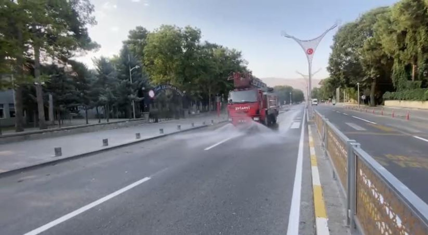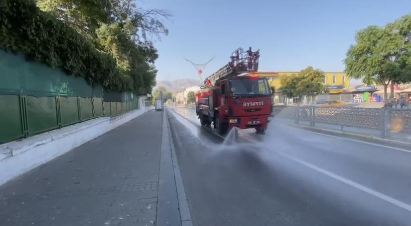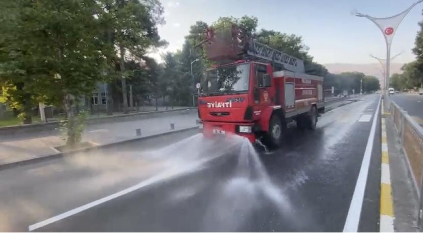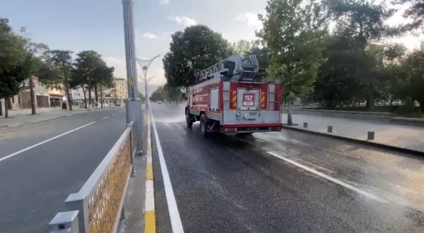 Belediyemiz İtfaiye Müdürlüğü ekipleri, sabahın erken saatlerinde şehrimizin ana caddelerinde yıkama çalışması gerçekleştirdi.