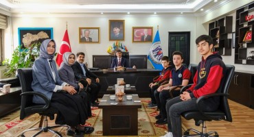 Gelecek nesillere verilen önemin ve güvenin simgesi olan 23 Nisan Ulusal Egemenlik ve Çocuk Bayramında, Piri Sami Hafız İmam Hatip Ortaokulu Öğrencilerinden Ömer Ali Daltaban, Yusuf Kerem Mollaoğlu, Muaz Kılıçtaş, Okul Müdürü Osman Çiçek, Öğretmenler Nuran Aksu ve Yasemin Haspolat, Belediye Başkanımız Bekir Aksun’a ziyarette bulundular.