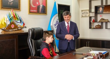 23 Nisan Ulusal Egemenlik ve Çocuk Bayramı münasebetiyle öğrenciler Belediye Başkanımız Sayın Bekir Aksun'a ziyarette bulundular.