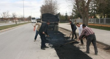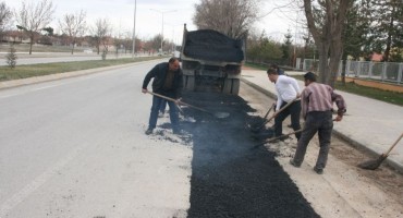 Şehir içerisinde kış şartları ve alt yapı çalışmaları sebebiyle hasar gören caddelerde asfaltlama öncesi tamirat çalışması gerçekleştiren belediye ekipleri asfalt problemi olan cadde ve sokak bırakmayacak.