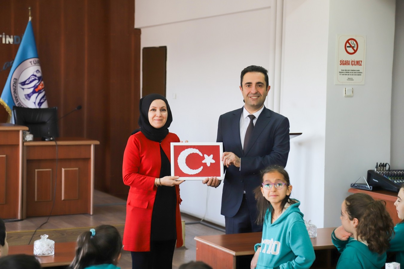 Ziyaret kapsamında ayrıca 12 Mart İstiklal Marşı’nın Kabulü ve Mehmet Akif Ersoy’u Anma Günü dolayısıyla öğrenciler tarafından Belediye Başkan Yardımcımıza Türk Bayrağı takdim edildi.