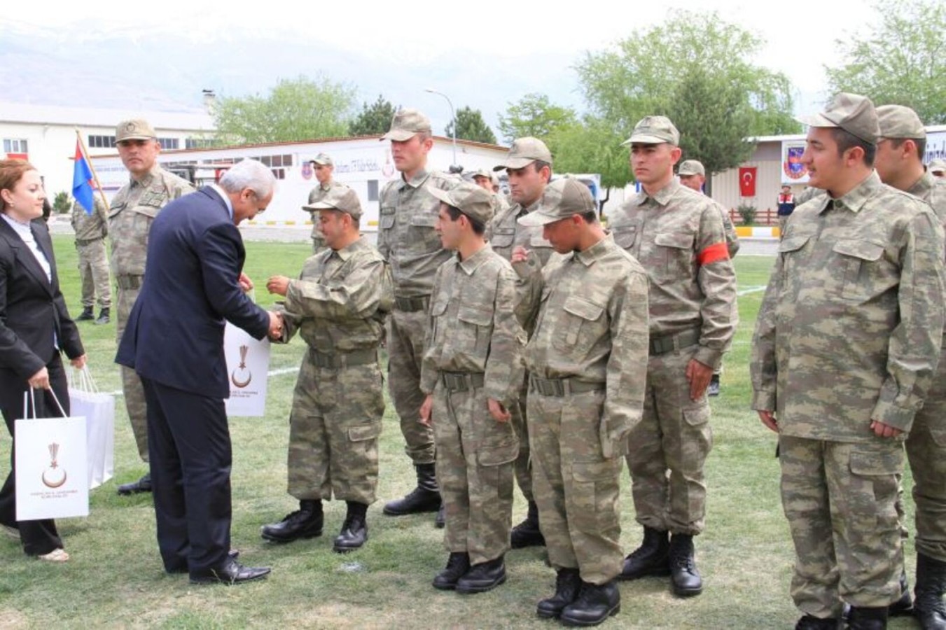 Konuşmaların ardından, temsili askerlik görevini başarılı bir şekilde tamamlayan 24 engelli gencimize, Vali Abdurrahman Akdemir ve Belediye Başkanı Cemalettin Başsoy tarafından çeşitli hediyeler verildi.