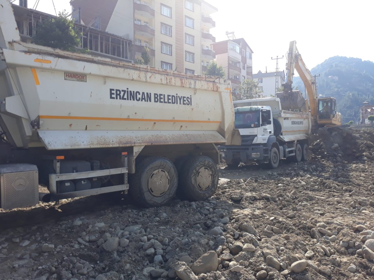 Erzincan Belediyesi Sel Felaketi Yaşanan Dereli'de Çalışmalara Destek Veriyor