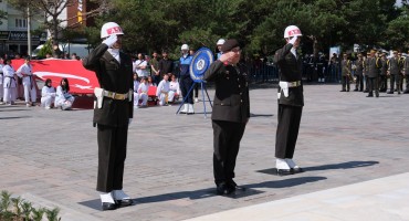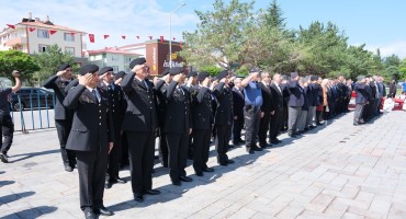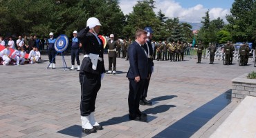 Çelenk sunumunun ardından saygı duruşunda bulunuldu, İstiklal Marşı okunurken Türk Bayrağı göndere çekildi.