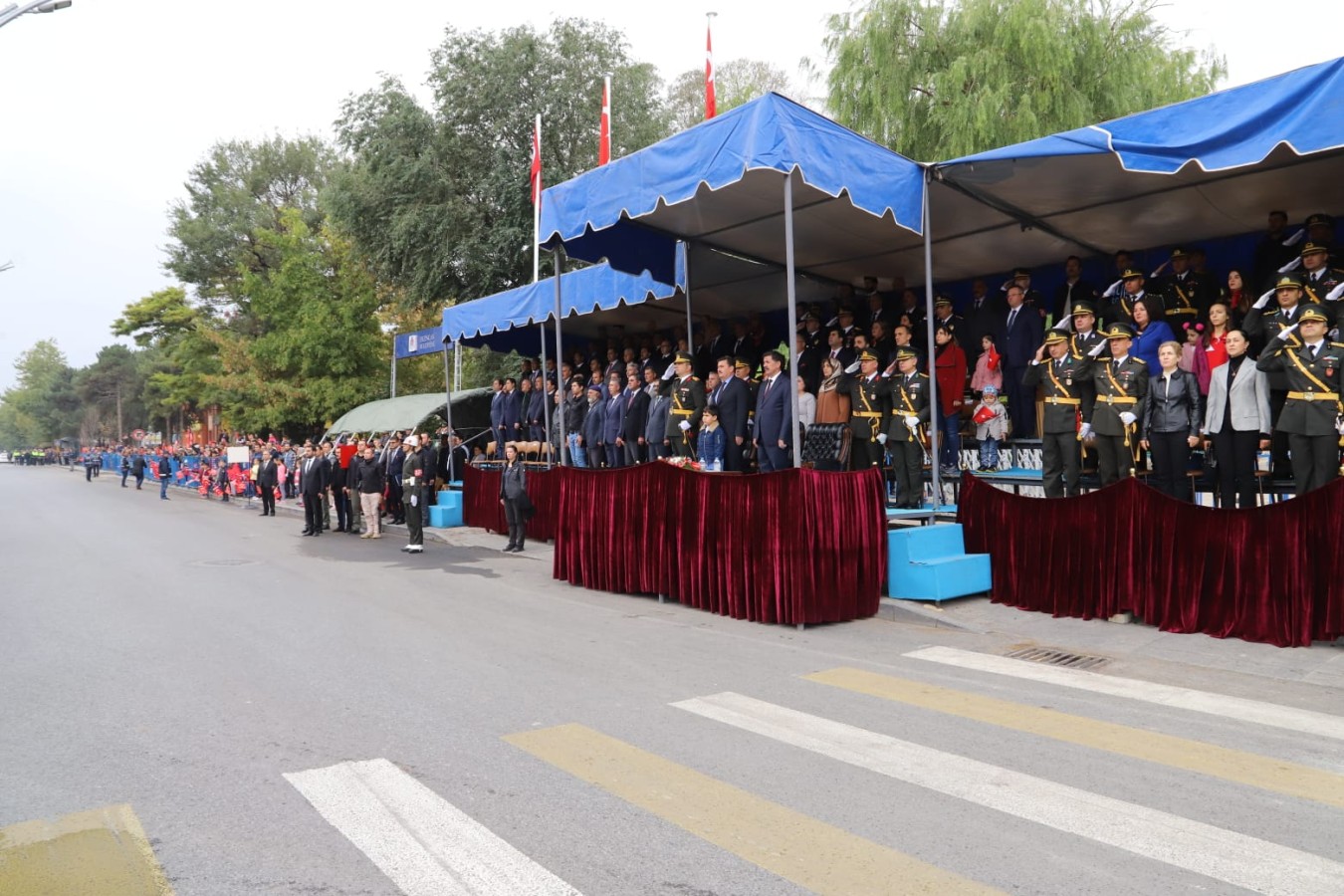 29 Ekim Cumhuriyet Bayramı’nın 96. yıl dönümü kutlamaları kapsamında Ordu Caddesinde geçit töreni düzenlendi. Düzenlenen tören Erzincan Valisi Ali Arslantaş, 3. Ordu Kurmay Başkanı ve Garnizon Komutanı Tuğgeneral Ali Ekiyor, Erzincan Belediye Başkanı Bekir Aksun’un vatandaşları selamlamasıyla başladı. Selamlamanın ardından saygı duruşunda bulunulmasıyla Askeri Bando eşliğinde İstiklal Marşı okundu. Ardından Cumhurbaşkanı Recep Tayyip Erdoğan ve Erzincan Milletvekilleri Süleyman Karaman ve Burhan Çakır’ın 29 Ekim Cumhuriyet Bayramı mesajları okundu. Törende okunan şiirlerin ve folklor gösterisinin ardından Bando, Ordu Tören Bölüğü, Tören Komutanı ve Karargâhı, Malûl ve Muharip Gaziler, Okulların Bayrak ve Flamaları, Ortaokul ve liselerin geçişi, Askeri Birlikler, Erzincan Belediyesi Mehter takımı ve meslek teşekküllerinin geçişi yapıldı. Töreni izlemeye gelen vatandaşlar ellerinde Türk bayrakları ile bayram coşkusuna ortak oldular.