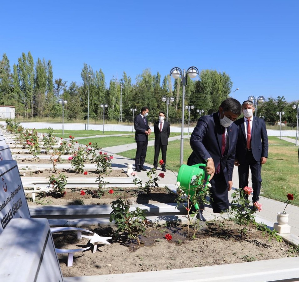 Erzincan Belediyesi önündeki Atatürk anıtına çelenklerin sunulmasının ardından Garnizon Şehitliğinde düzenlenen törende Okunan Kur’an-ı Kerim Tilaveti ve İl Müftüsü Burhan Çakır’ın yaptığı dua sonrasında il protokolü kabirlere karanfil bıraktı.