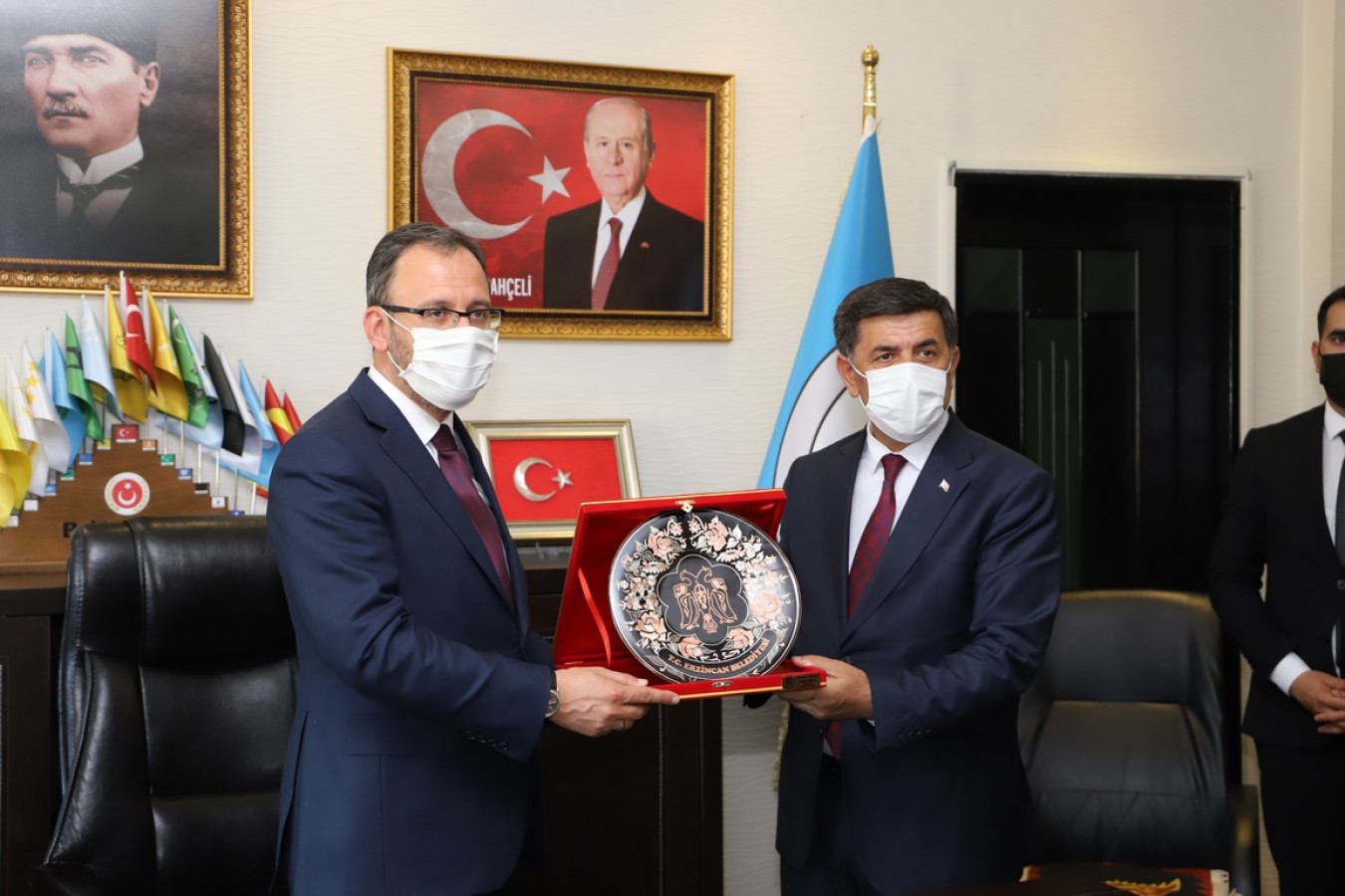 Bir dizi ziyaret ve incelemelerde bulunmak üzere Erzincan’a gelen Gençlik ve Spor Bakanı Dr. Mehmet Muharrem Kasapoğlu, Erzincan Belediyesini ziyaret etti.