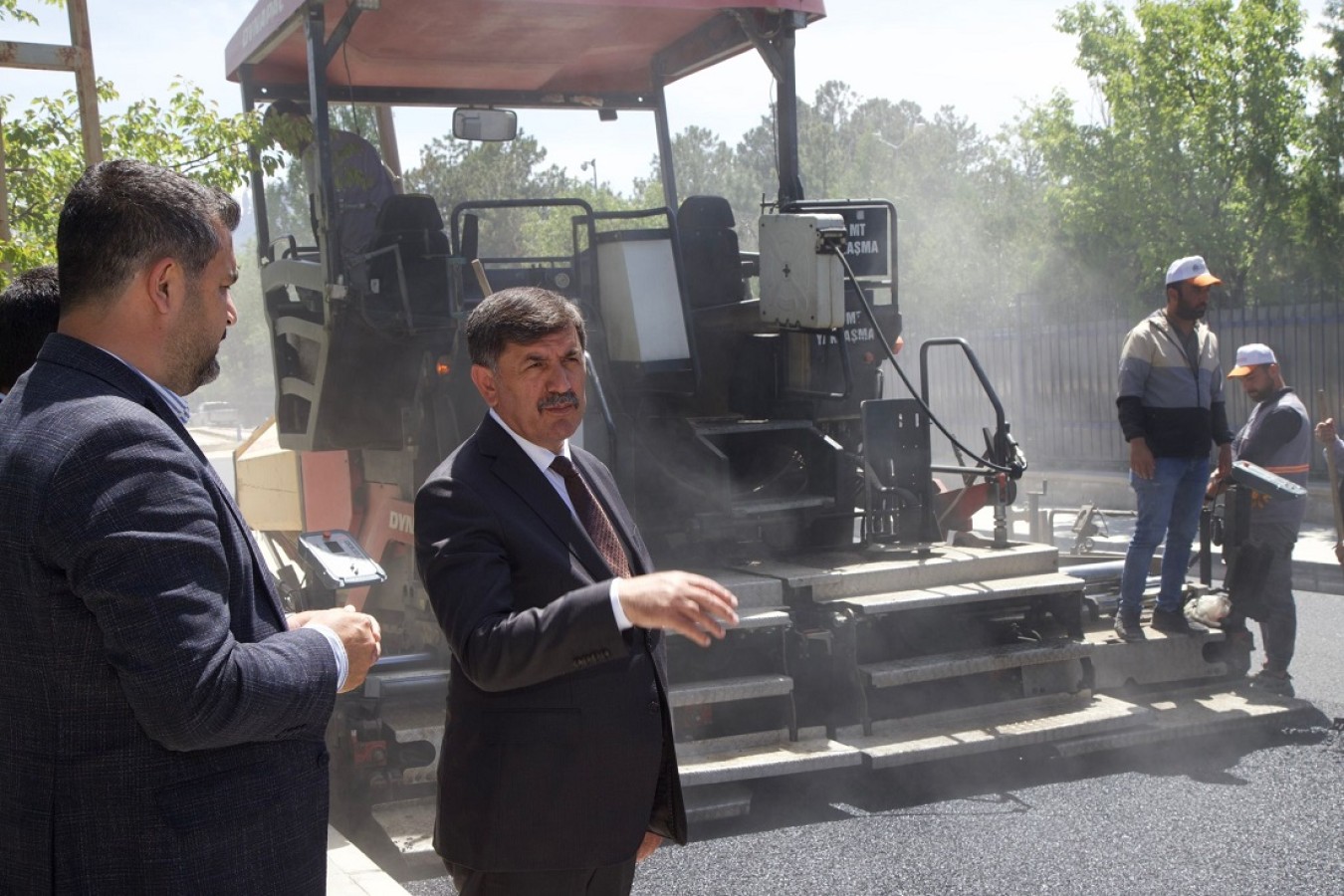 Başkan Bekir Aksun Kurutilek yolundaki Asfalt serim çalışmasını yerinde inceledi.