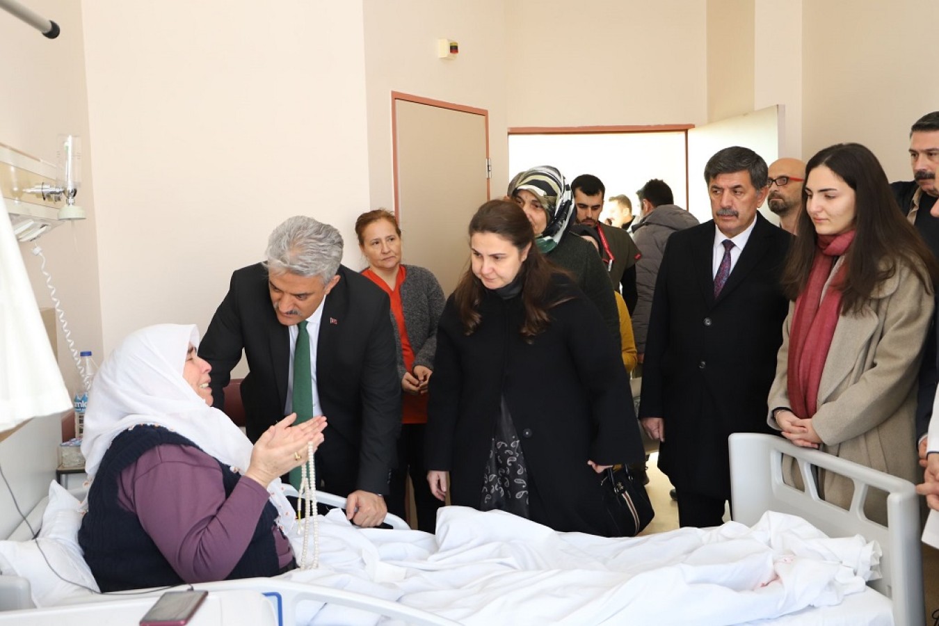 Belediye Başkanımız, Afet bölgesinden ilimize getirilerek tedavi altına alınan yaralı vatandaşlarımızı hastanede ziyaret etti