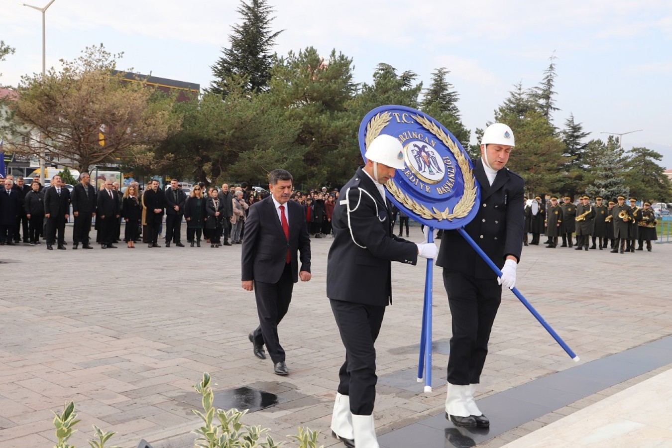 Belediye Başkanlığımız önündeki Atatürk anıtında düzenlenen programda, Erzincan Valiliği, Garnizon Komutanlığı ve Belediye Başkanlığımızın çelengi sunuldu.