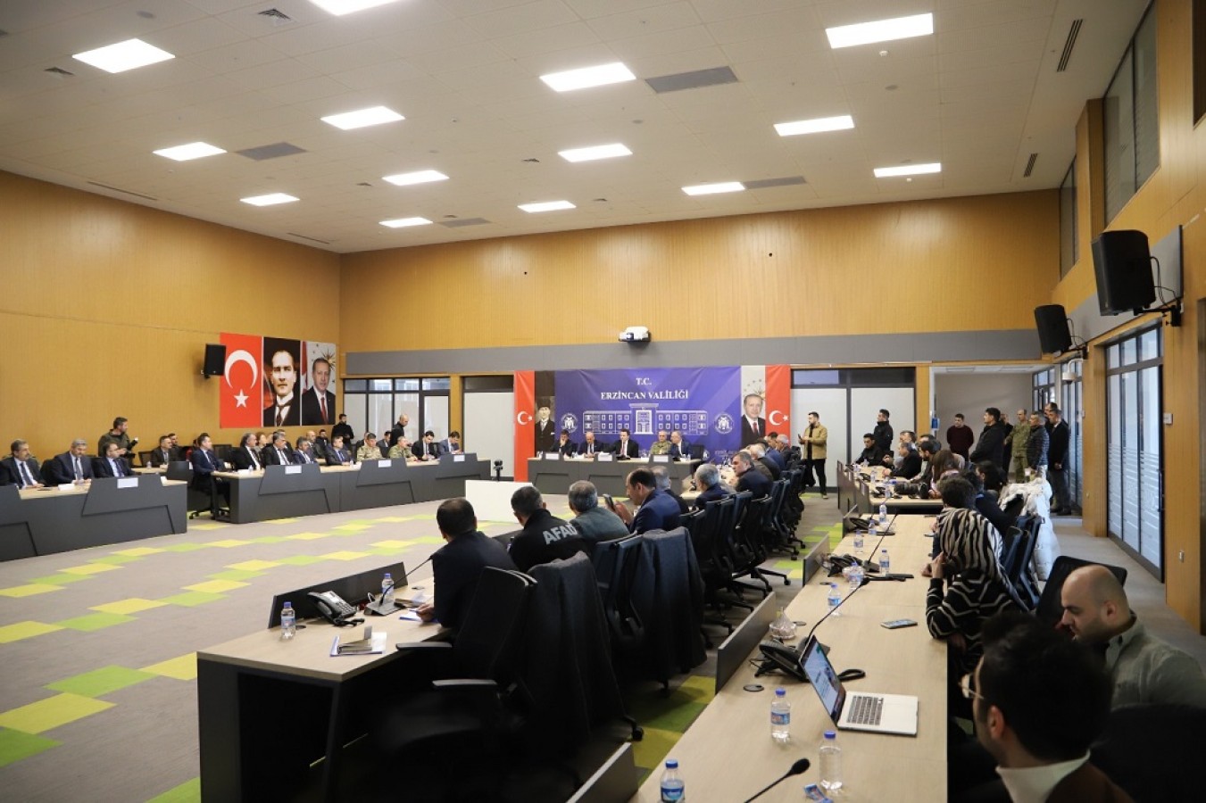 AFAD İl Müdürlüğü toplantı salonunda düzenlenen toplantıya; Vali Vekili Mehmet Deniz Arabacı, Erzincan Milletvekili Süleyman Karaman, 3. Ordu Kurmay Başkanı ve Garnizon Komutanı Tümgeneral Davut Ala, Belediye Başkanımız Bekir Aksun, EBYÜ Rektörü Prof. Dr. Akın Levent, 59. Topçu Eğitim Tugayı Komutanı Tuğgeneral Ahmet Kasa, Vali Yardımcıları Yunus Emre Temel ve Ömer Özbay, ilgili kurum müdürleri, sivil toplum kuruluşu temsilcileri ve mesleki odaların yöneticileri katıldı.