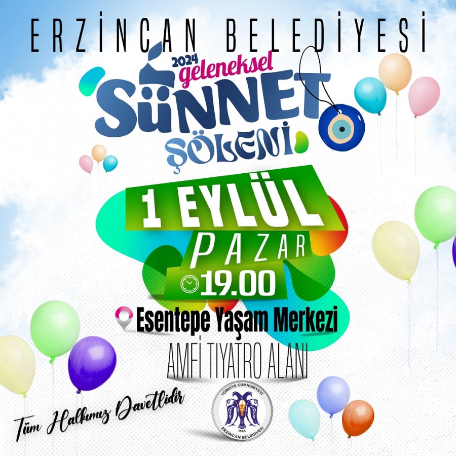 Erzincan Belediyesi'nin geleneksel hale getirdiği Toplu Sünnet Şöleninde bu yıl 115 çocuk sünnet ettirildi. Şölen 1 Eylül 2024 Pazar Günü Saat 19.00 da Esentepe’de yapılacak.