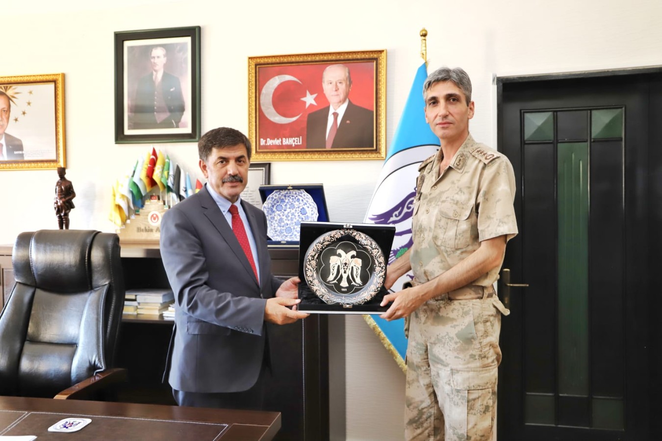 Erzincan’da ki görevinin sona ermesi sebebiyle Erzincan İl Jandarma Komutanı J.Kd.Alb. Hasan AKSOYLU veda ziyaretleri kapsamında Erzincan Belediye Başkanı Bekir Aksun’u makamında ziyaret etti.