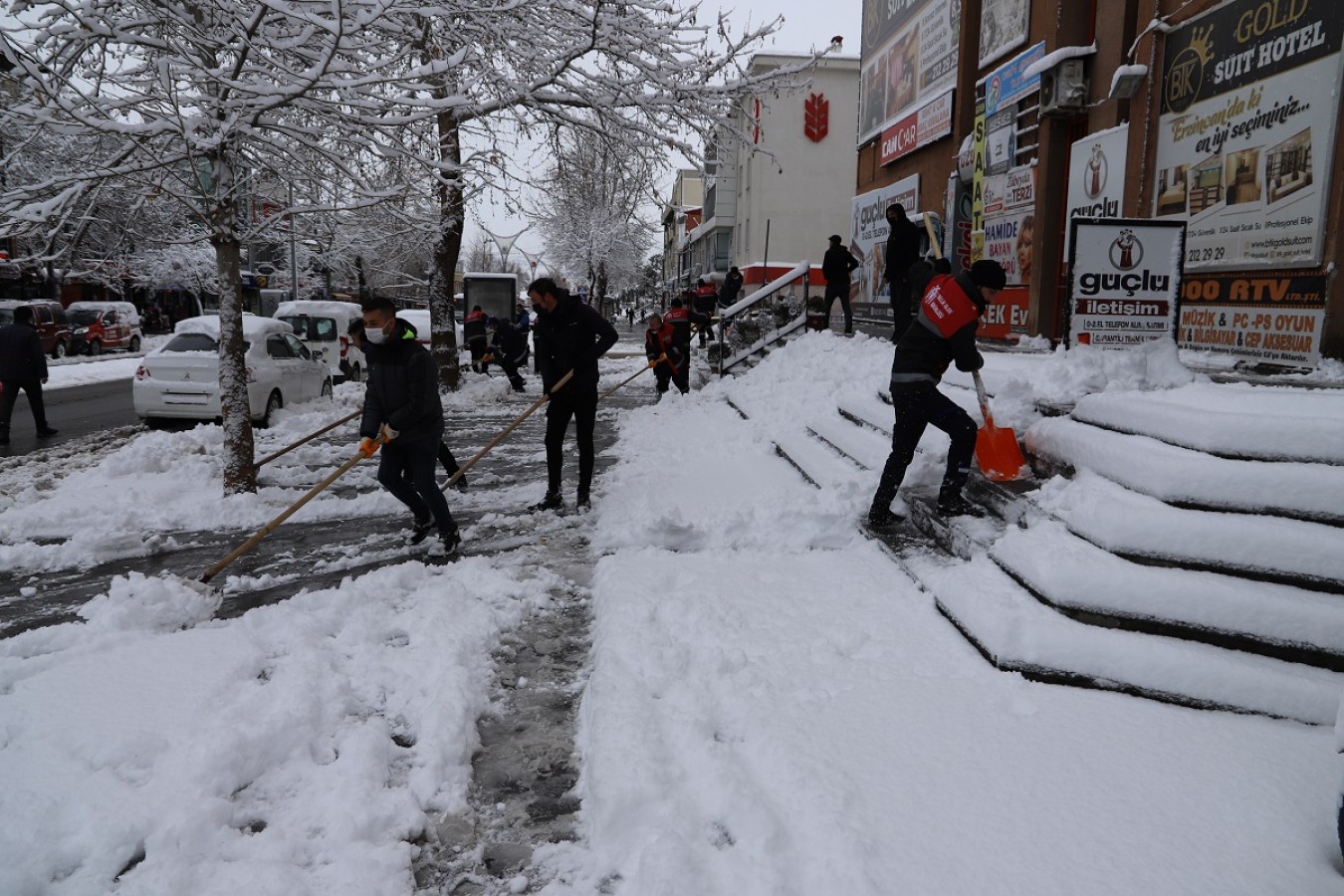 Ana arterlerde yapılan küreme ve tuzlama çalışmalarının yanı sıra ara il genelinde tüm sokaklarda da sırasıyla küreme ve tuzlama çalışmaları yapılıyor. Ayrıca kaldırımlarda da yürütülen karla mücadele çalışmaları aralıksız bir şekilde devam ediyor.