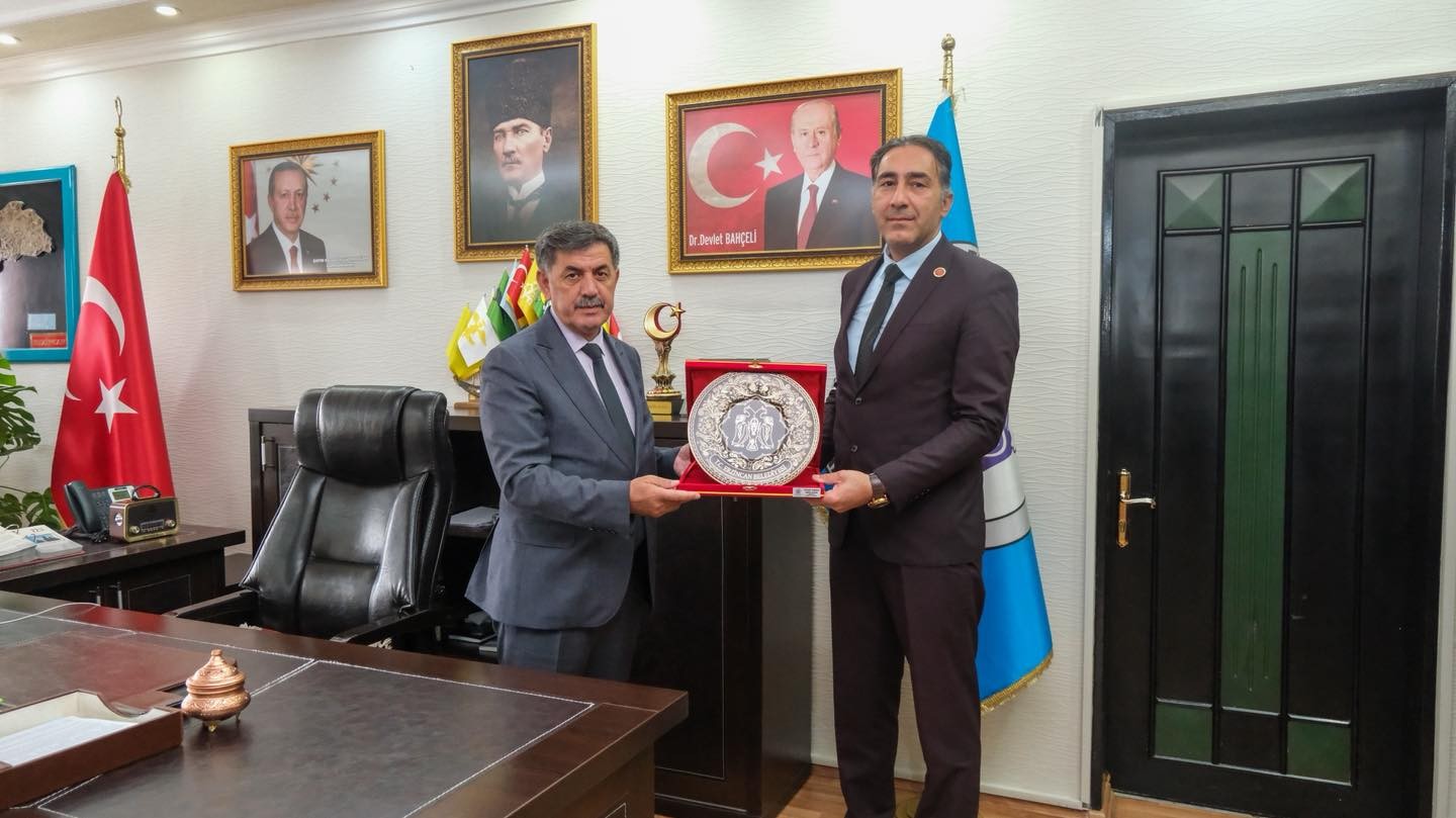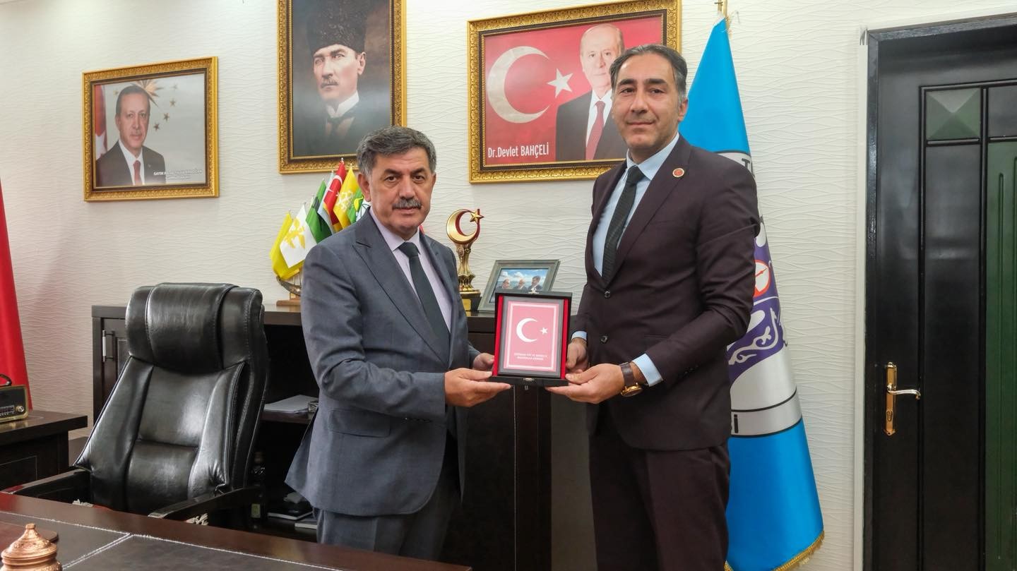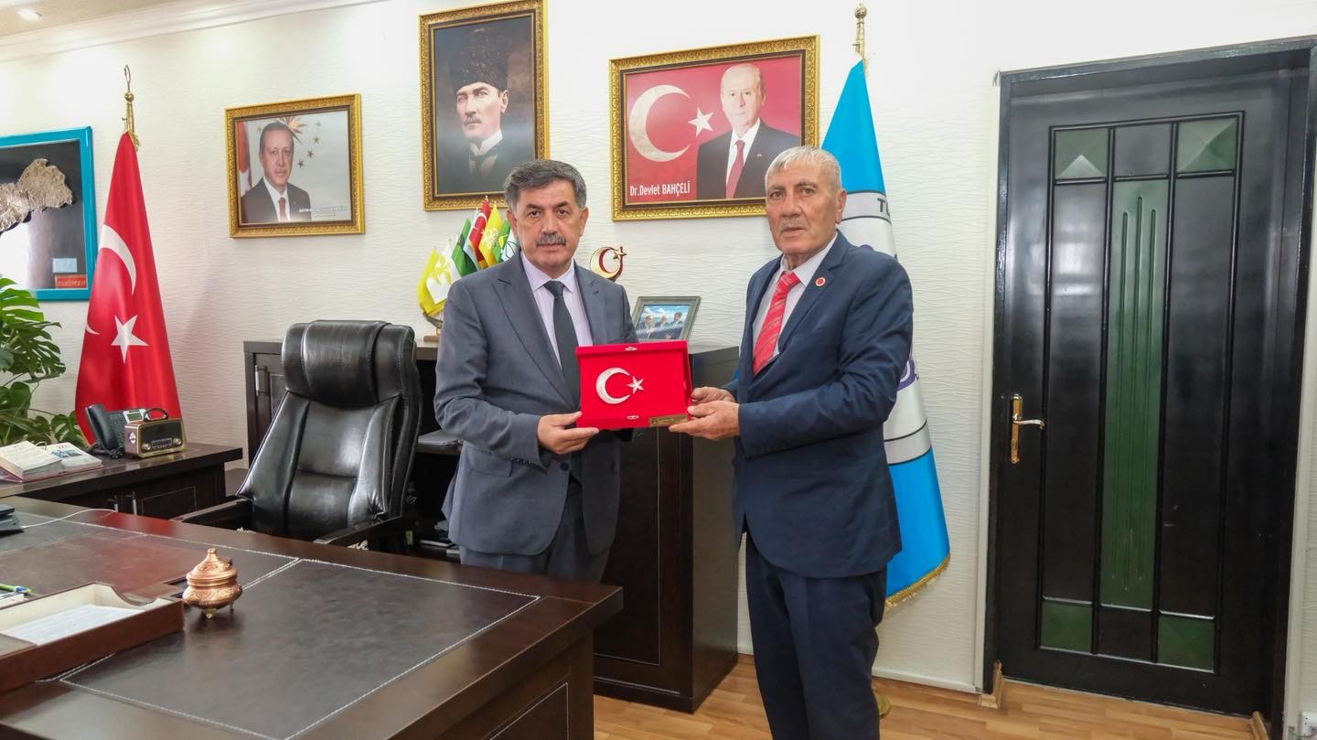 19 Ekim Muhtarlar Günü münasebetiyle; Erzincan Valiliği İdare ve Denetim Müdürü Ufuk Akpınar, Belediyemiz Muhtarlık İşleri Müdürü Cemhan Torun, Erzincan Köy ve Mahalle Muhtarları Derneği Başkanı Murat Tapan ve Erzincan Muhtarlar Derneği Başkanı Kurtuluş Kılıç, Belediye Başkanımız Bekir Aksun’a ziyarette bulundular.