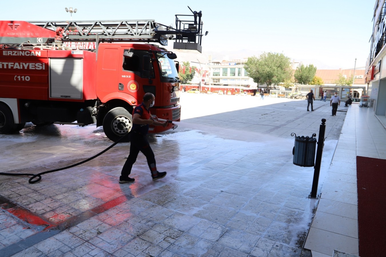 Erzincan Belediyesi salgın hastalık tedbirleri kapsamında dezenfeksiyon çalışmalarını sıklaştırdı. Temizlik İşleri Müdürlüğü, İtfaiye Müdürlüğü ve Veteriner İşleri Müdürlüğü’ne bağlı ekiplerle virüse karşı topyekün mücadele veren Erzincan Belediyesi ana arterlerde ki kaldırımlar, otobüs durakları vb ortak kullanım alanlarında temizlik ve dezenfeksiyon çalışmalarını sürdürüyor.