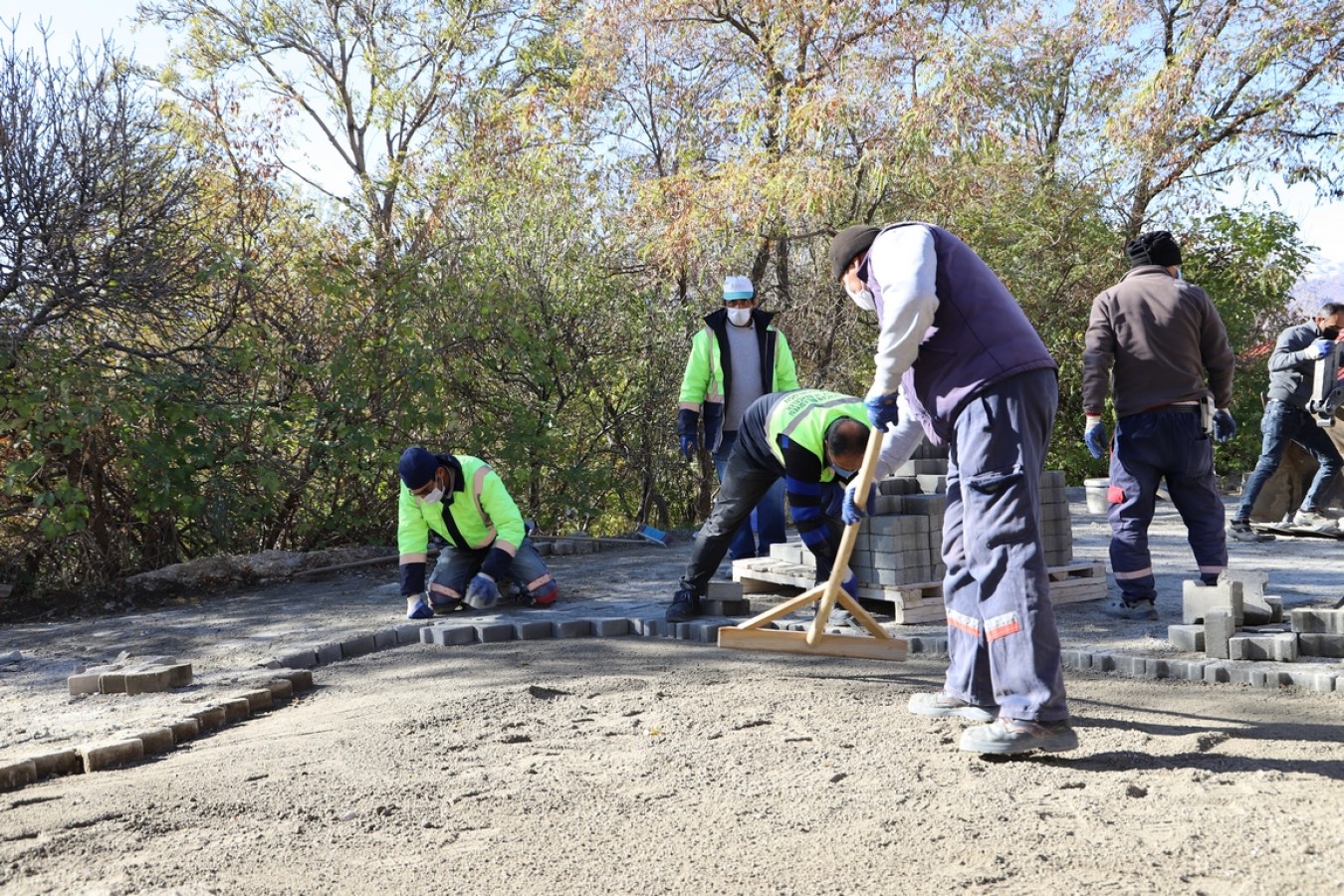 Ekipler bu kapsamda Yalnızbağ yerleşkesi Keçeloğlu İbrahimağa sokakta doğalgaz ve içme suyu şebekesi alt yapı çalışmaları dolayısıyla bozulan kısımlarda parke taş uygulaması yapıyorlar.